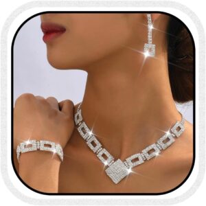 Unicra Crystal Bridal Wedding Jewelry Set Silver Rhinestone Necklace Earrings Bracelet Sets Formal Costume Jewelry for Women and Brides