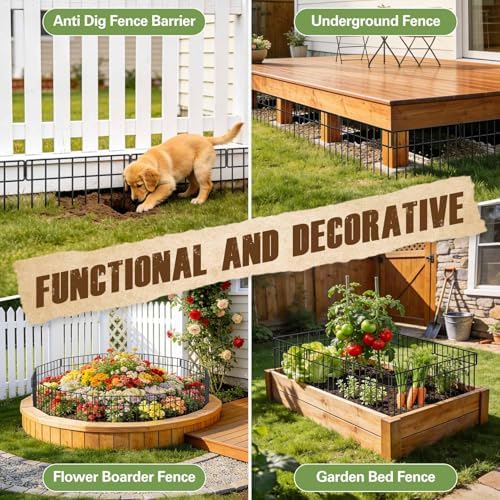 Multi-Purpose Garden Fence for Different Outdoor Areas:This garden border fence animal barrier is designed for multiple outdoor uses. It can protect vegetable gardens, lawns, flower beds, and garden paths from digging animals. The fence also works as an extra barrier for existing fences, helping prevent pets such as dogs from digging under the fence line and escaping while keeping wildlife out of your backyard