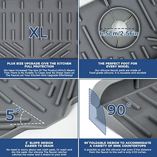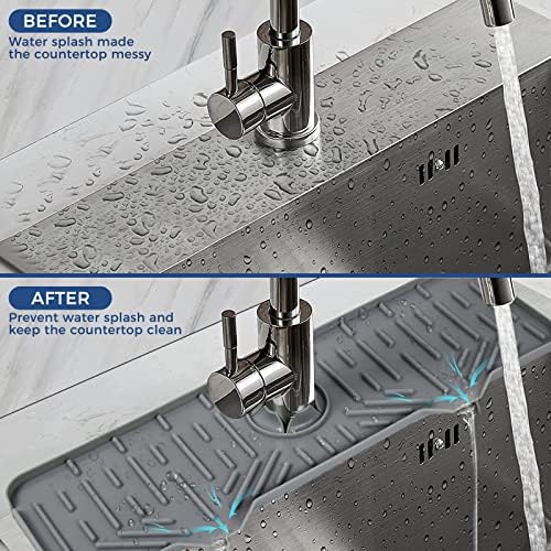 💪【PERFECT KITCHEN ACCESSORIES】 Using these silicone faucet splash catchers with their grey luxurious, timeless color and seamlessly blends into your home to create perfect Sink Accessories, add a touch of luxury in your kitchen will give your house an amazing makeover and elevate your home decor.