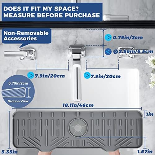 18″ Kitchen Sink Faucet Splash Guard Plus Size Silicone Sink Faucet Drying Mat Faucet Handle Drip Catcher Tray Dish Sponge Holder Kitchen Sink Accessories Protector Home Organization Gadgets Organizer