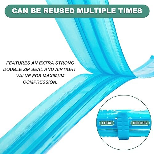 💎Effortless Air Removal: Our vacuum storage bags are compatible with standard vacuum cleaners. Simply place your items in the bag, seal the zipper, use the vacuum cleaner to suck out the air, and close the lid. For convenience, we also provide a hand pump that allows you to easily vacuum-pack your items when a vacuum cleaner is not available.