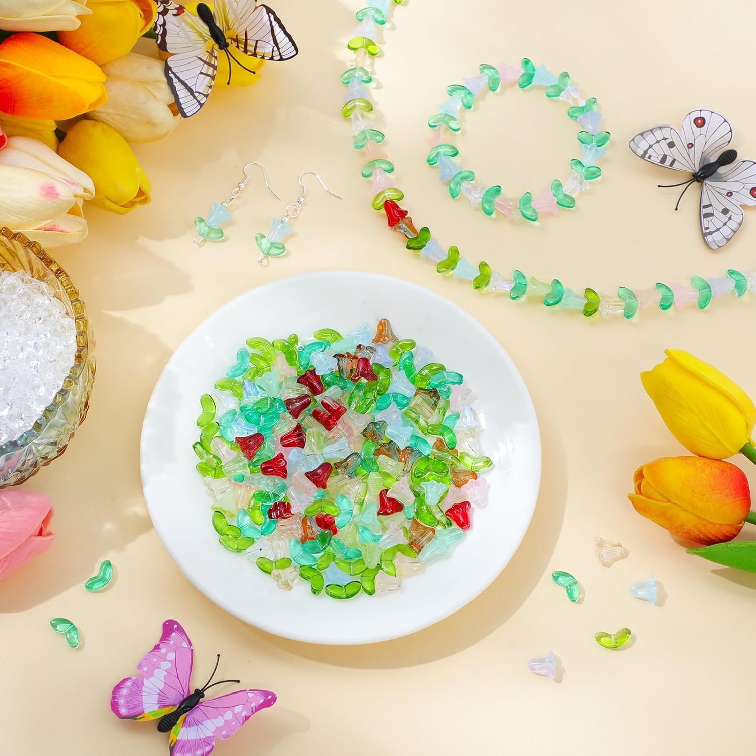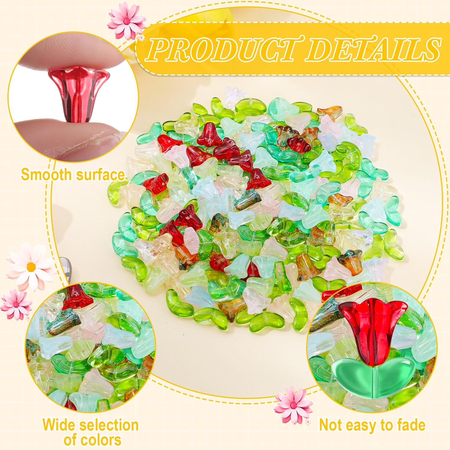 Wide Selection to Suit Your Relishes: you will receive 320 pieces of glass flower beads, coming in 160 tulips and 160 leaves shaped beads, designed with translucent styles, exquisite and cute, sufficient quantity for you to apply and replace