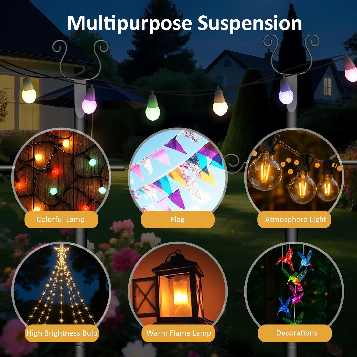 4 Pack String light poles: Includes 4 poles + mounting accessories, no extra purchases .Metal light polesompatible with most string lights