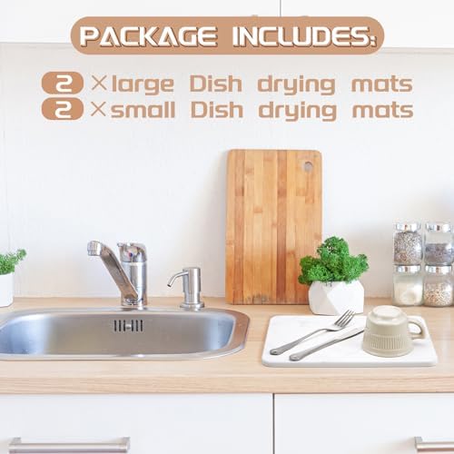 The package includes 4 pieces of kitchen drying mat with two size. It is suitably sized and adequately thick to facilitate efficient drying and insulation for a diverse range of utensils including bowls, bottles, cups, and other kitchen accessories.