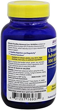 Ultimate FloraMax Advanced Care 100 Billion 30 Vegetable Capsules (F) from Advanced Naturals is a maximum strength probiotic that may help patients with digestive and immune support. This dietary supplement contains over 150 million good bacteria that enhance the performance of your intestines. Probiotics contain live bacteria and yeast that can enter your intestines and begin working.