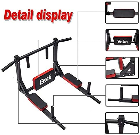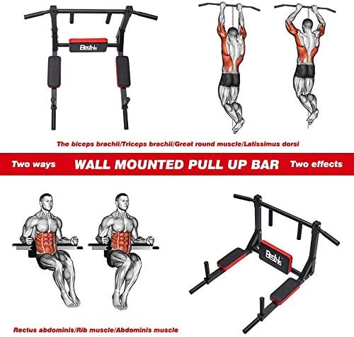 BESTHLS Wall Mounted Pull Up Bar and Dip Station, Heavy Duty Wall Mount Pull-up Chin Up Bar Multifunctional Home Gym Workout Indoor Exercise Equipment Support to 440 Lbs