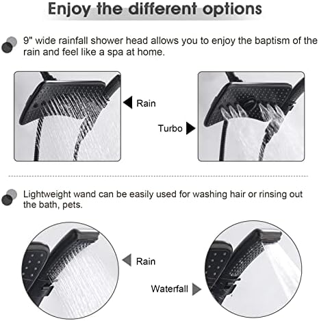 Rain shower heads combo is packaged in a strong box, perfect as a gift to friends. Package includes: 1*Rain shower head, 1*Handheld shower, 1*60 Inches stainless steel shower hose, 1*Teflon thread seal tape. Please note Washers are pre-assembled