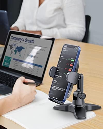FLEXIBLE AND ADJUSTABLE: The angle of the phone stand for desk can be adjusted both horizontally and vertically with the 360° swivel joint, you can always find one you like. The cell phone stand holder is ideal for watching video, recording and facetime calls.