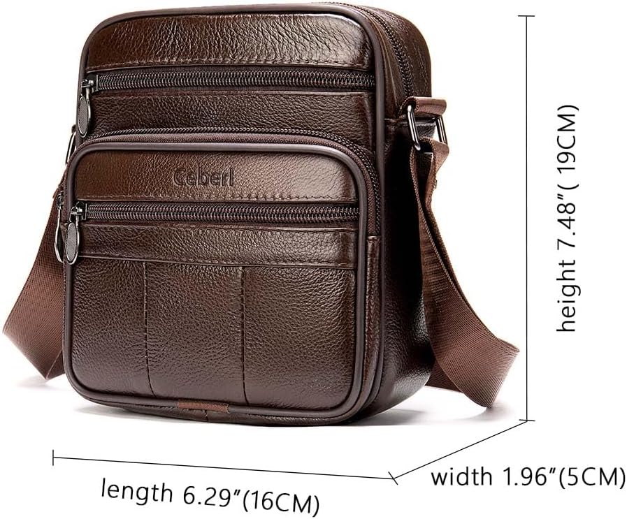 Ceberl Cowhide Leather Messenger Bag For Men Travel Shoulder Crossbody Bag Waterproof Casual Sling Business Handbag