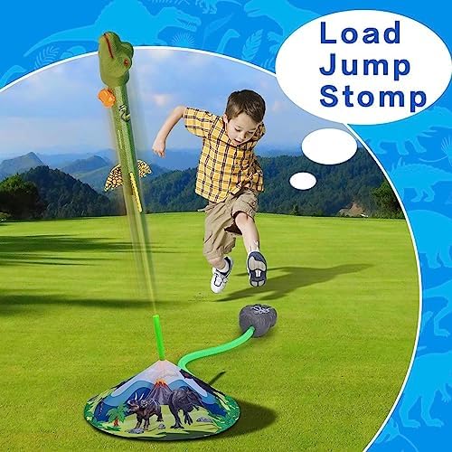 【Easy to Assemble and Storage】Our dino rocket toy is easy to assemble, even a little boy only needs a few minutes to build it perfectly. The detachable launcher stand can be stored easily in small spaces. A great choice for carry and travel.
