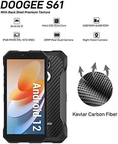 【Latest Android 12 Rugged Smartphone】Dual SIM 4G DOOGEE S61 cell phone rugged embraces the latest Android 12 system and MediaTek Helio G35 Octa-core CPU to provide the smoothest operating experience. Navigation support – GPS | Glonass | Galileo | Beidou