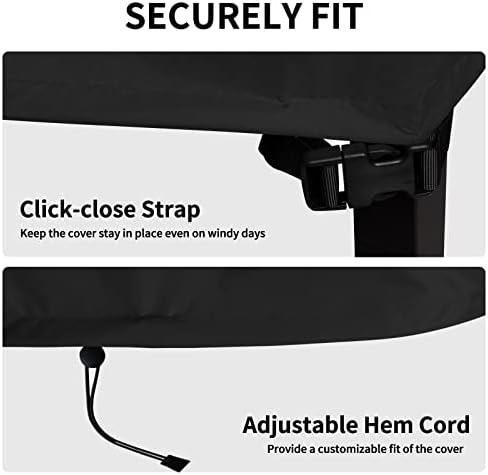 Easy to Use: Two wide padded handles make it easier to fit and remove. Click close-straps around furniture leg can prevent the cover from being blown off on windy days. Elastic hem cord with toggle allows for a tight and custom-like fit.