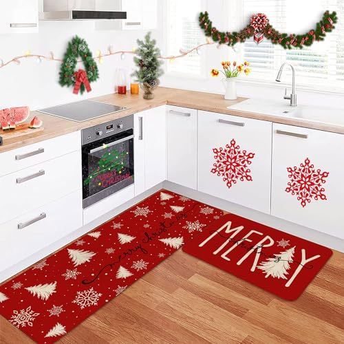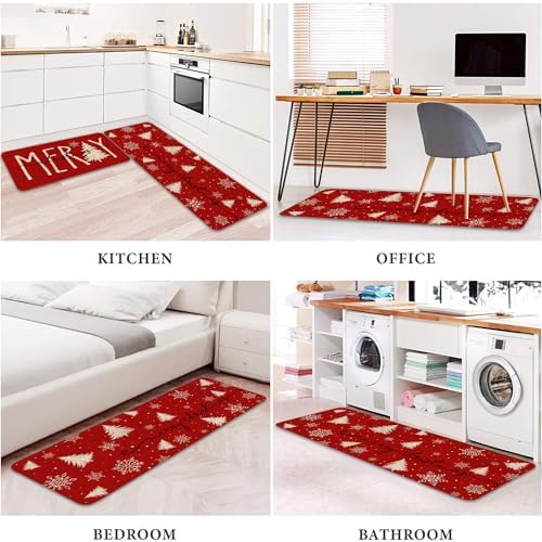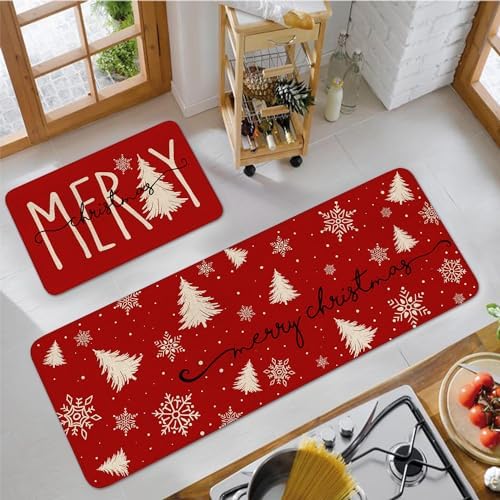 【Premium Material】The Merry Christmas kitchen rug is made of 100% linen that is low-profile and backed with non-slip recycled rubbe. The premium material is very eco-friendly,durable,not easy to get stain, non-slip, and absorb water.