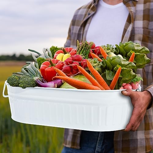 Long Design: the whole body of the galvanized metal flower pots is white with a medieval retro design, so that you can show the classical beauty whether you are serving drinks or potted plants; The overall shape is oval, long and large; The metal tub is also designed with handle, so that you can carry it with ease