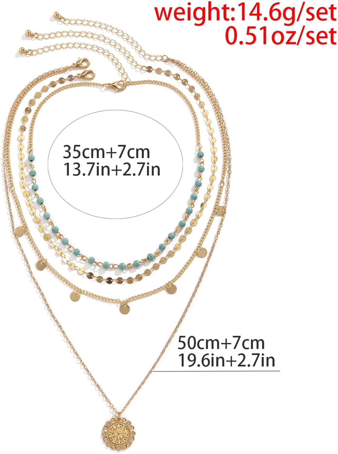 Gold Layered Necklace for Women Summer Boho Layered Stacked Pendant Necklace Country Concert Necklace Turquoise Coin Long Necklace