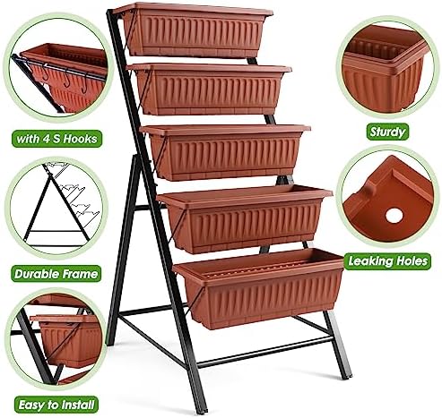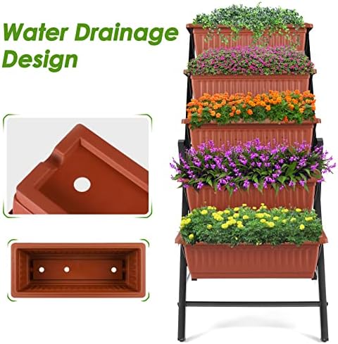 【5-layer plant box design】: This vertical outdoor planter adopts a 5-layer plant box design, using the staggered space so that each plant box will not be blocked, so that each plant can enjoy sunlight and water, which is beneficial The growth of plants, while the structure of the 5-layer plant box can meet your needs for planting a variety of plants.