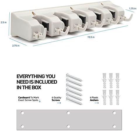 Easy To Mount Garage Storage Solutions – Included with the garage organizers are screws, anchors, a drilling template, and a guide–everything you’ll need to mount this mop hanger hook on door indoors or outdoors!