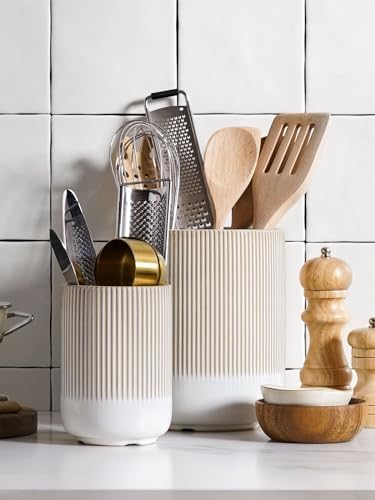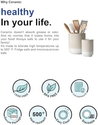 Solid and Secure – LE TAUCI kitchen utensil holder for kitchen counter provides easy access to your utensils, offering a stable and relaxing experience due to its substantial weight. Crafted from premium ceramic materials, these holders are not only robust but also easy to clean. Rest assured, they will remain securely in your countertop, giving you peace of mind while using them.