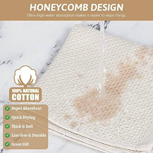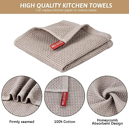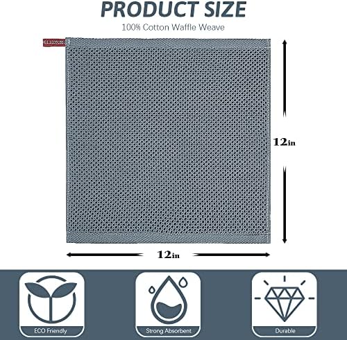 UNIQUE DESIGN: The classic honeycomb fabric makes this set of dish cloth have better cleaning ability and water absorption. Kitchen towels shrink to unique “honeycombs”after washing, exposing more surface area allows air to flow through the fabric so that it dries quickly and No bad smell. The hook design makes it easy to store and hang.