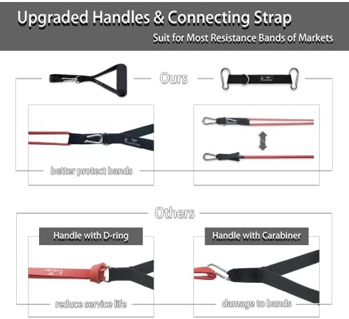 【Fully Upgraded】The resistance band is made of natural latex, and bigger D-rings have better compatibility and durability. Handles are designed with carabiner and D-ring, which is convenient to connect various resistance bands on the market, and avoid scratches on the resistance bands.