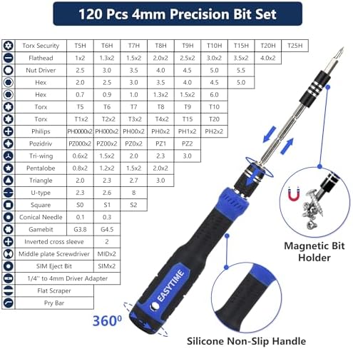 【Durability and Reliability】The bits of this precision screwdriver set are made of 60HRC hardness CRV to ensure strength, durability, and oxidation resistance for long-lasting use. You can use our tool kit to help you remove and replace fasteners. The powerful functions make it a unique computer repair kit, a perfect gift for anyone who loves repair projects. If you have any problems with laptop screwdriver kit, just contact us and we will provide you with a lifetime warranty and 30-day refund.