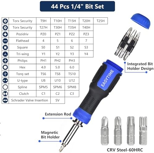 【Adaptability and Portability】 The 1/4 nut driver of pc tool kit has an integrated bit holder design, and you can make a personalized multi-bit screwdriver by choosing up to 12 bits from the 1/4 Safety Screw Bit Kit. You’ll have the right tool for the job, eliminating the need to carry multiple tools at any repair site. In addition, pc screwdriver set comes with an Oxford cloth storage bag, the bits are secured to a portable Oxford cloth bag with Velcro for easy storage and carrying.