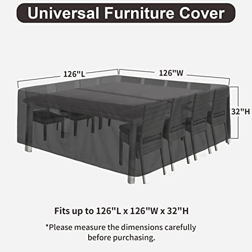 All-round Protection: The patio cover with fastening straps prevent the cover from being blown off on windy days. Elastic hem cord with toggle allows for a tighter and uniformly fit. This full coverage design avoids the exposure of your furniture from dust, sun, rains, bird droppings, and keeps them always look like new.