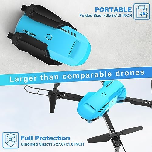 Full Function Experience You can experience one key take-off/landing, headless mode function, 3-speed mode, 360° flip function, emergency stop, and one key return with remote control. Larger Unfolded Body Our drone’s body size is 11.7*7.8*1.8inches(unfolded), and its weight is 94g/3.3ounce, which makes it bigger and owns better wind resistance. 1080P HD Camera Wide angle 1080P High definition FPV Wifi camera and 90° manually adjustable lens, allows you to enjoy real-time vivid aerial photos and videos, and creates an amazing impression of the flight for you. Portable and Safe Design The foldable drones for adults can be carried around with a carrying case equipped for you. 22minutes flight(2 batteries), propeller guards, low battery warning, and emergency stop ensure the safety of the flight. Stable Altitude Hold We optimized the algorithm of the drone and gave it more powerful power and a larger body under the same weight. So that it has a better hovering effect, just press the trim button to adjust. 1080P HD Wifi Camera With a built-in 1080P high definition FPV wifi camera, you can easily take vivid aerial photos and videos, and create an amazing impression of the sky. 3D Flips Tap one button, then the drone will perform a 360 flip and roll in any direction, making the flight more exciting. One Key Take Off/Landing Easy to start or land, simply tap the function, and it will fly up automatically and stay flying or flight down slowly. Headless Mode Under this mode, you can play the drone without worrying about what direction it is facing. Emergency Stop Just one click to avoid an accident happening.