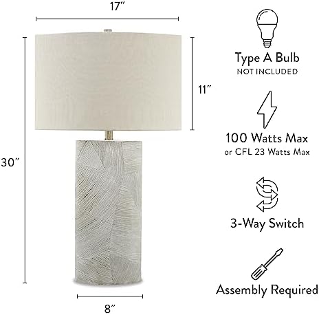 DIMENSIONS: 17″ W x 9.38″ D x 30″ H. 3-way switch; 1 E26 socket; type A bulb recommended (not included); max 100W or CFL 23W