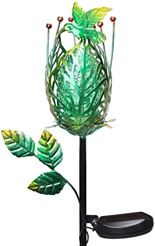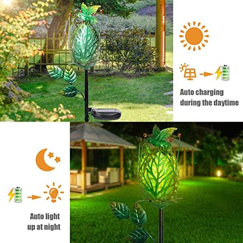 Solar Garden Lights Outdoor Decorative – Flower Solar Garden Stake Lights with Hummingbird Landscape Path Lights Waterproof Solar Pathway Lights for Garden, Lawn, Patio, Yard Decorative(Green)