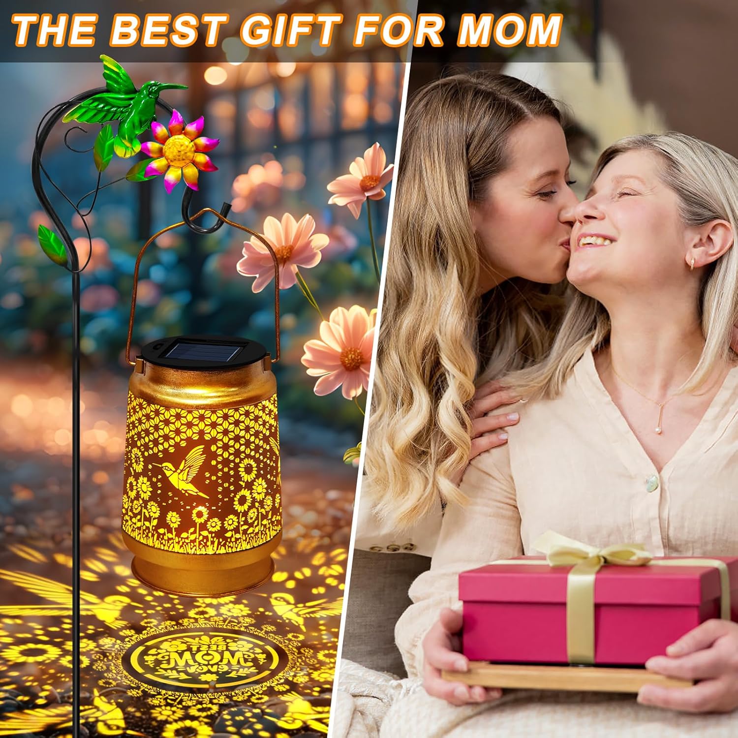 Ideal Garden Decorations and Birthday Gifts for Women:EDOF solar outdoor lantern with this good lighting,beautiful pattern projection,solar outdoor lights is a surprising yard outdoor decorations to decorate your garden,patio,porch,pathway,walkway,terrace,balcony and lawn,tree;flowerbed;solar hummingbird lights with the bottom projection “mom” is a unique gardening hummingbird thoughtful gifts for women,mother,grandmother,birthday gift,Hummingbird lover,housewarming gifts on Mother’s Day,Thanksgiving,Christmas.