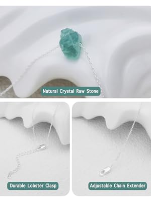 This women’s raw crystal necklace is made of a 925 sterling silver cross chain and raw, unpolished natural crystal stones. The chain length is 16 inches with a 2-inch extender, adjustable for comfort, and weighs 0.13 ounces. The crystal stones are about 0.4*0.4 inches, each hand-cut, making every piece a unique gift from nature.