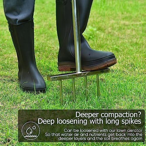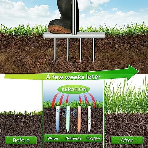 【Maintain Your Lawn By Yourself】 Fadown manual lawn aerator has 4 longer sharp spikes,5inch in length,Let Your Aeration Work Much Easier. Spike lawn aerator has less impact on the health of your lawn. Spike aeration is ideal for lawns that are not badly compacted.