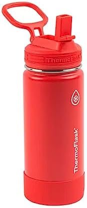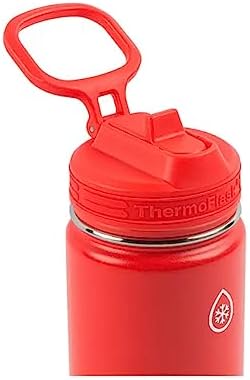 Designed for your busy life, the ThermoFlask Insulated Stainless Steel Water Bottle lets you sip with ease. The 16oz bottle features a folding straw lid lets you sip while on the go, and is leakproof when folded. The double wall insulation keeps drinkes chilled for up to 24 hours and prevents condensation on the outside. The wide mouth is for easy filling and cleaning. The convenient 16oz size is perfect to slip into a bag or backpack and is ready for easy hydration all day long. Includes: (2) 16 oz Stainless Steel Bottles Features: Vacuum Insulated: Keep your drink cold for up to 24 hours Double Wall: Sweat-free design prevents condensation 18/8 Food Grade Stainless Steel: BPA-free, toxin-free, and won’t rust Straw Lid: Easy open and close straw allows max-flow, no-tilt drinking (straw lid not intended for hot liquids) Comfort loop handle for easy carrying or attaching to bags Wide Mouth: For ice cubes and easy cleaning Dimensions: Bottle: Food grade 18/8 stainless steel Lid: BPA-free copolymer polypropylene Each Bottle: 82mm (L) x 76mm (W) x 213mm(H) Weight: 0.7 lbs total Limited Lifetime Warranty Stainless Steel Straw Lid BPA Free Dishwasher Safe