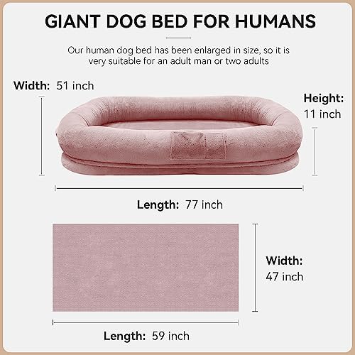 Comfortable Orthopedic Foam: Simply rest your body within the contours of our dog bed for humans and be amazed at how quickly you fall asleep! It’s so snug and cozy, it makes a fantastic nap bed for adults and kids!