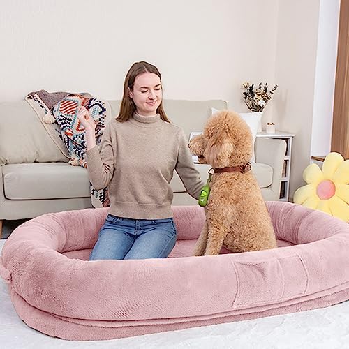 Do you love to take naps or get on the floor and play with your dog? If you do, then our Ultra-Soft Human Size Dog Bed is what you need! This oversized dog bed features everything you want to make your pet bonding experience comfortable, like a luxuriously soft fabric cover, orthopedic foam, waterproof lining, anti-slip bottom and convenient handles on both ends for easy carrying.