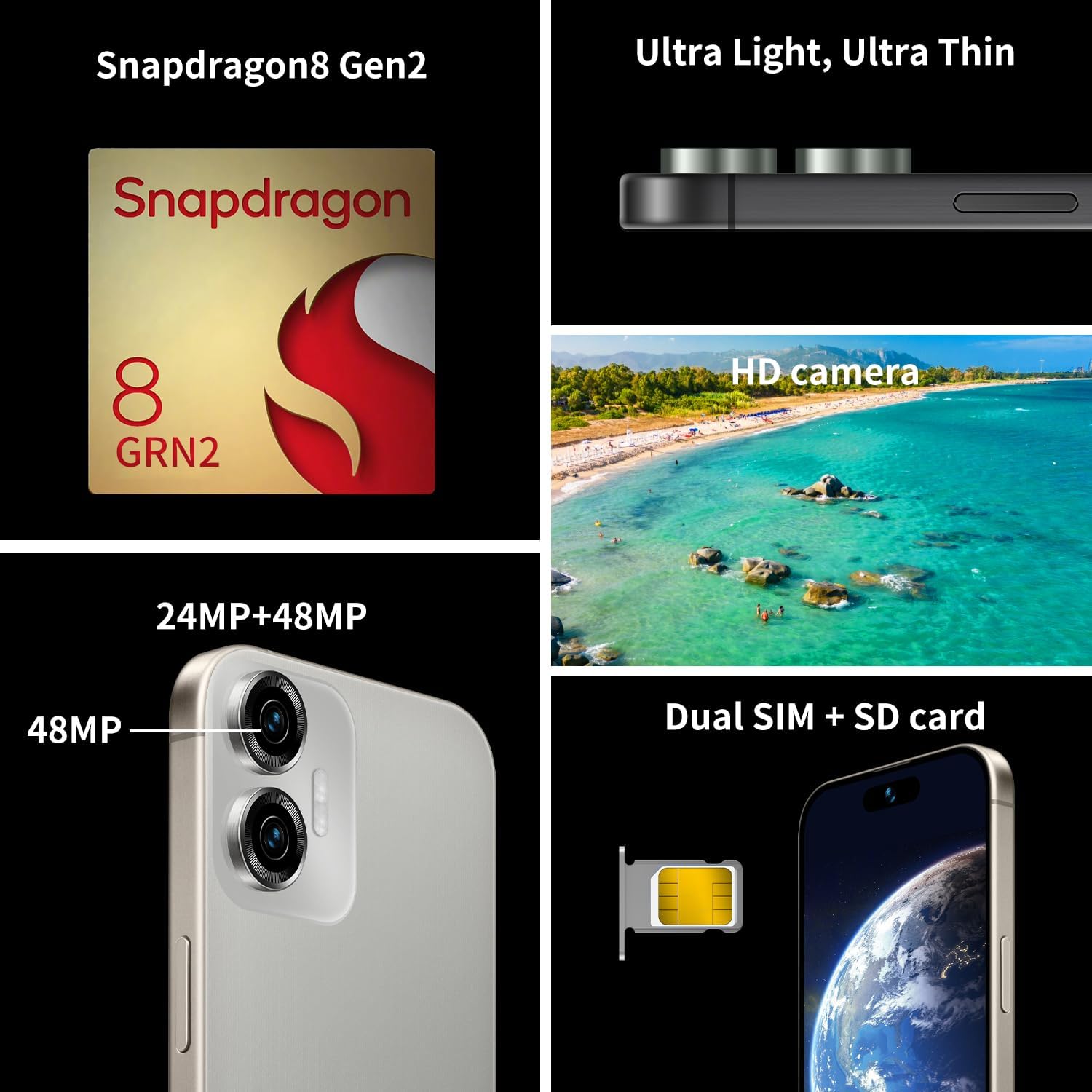 Unlocked Cell Phone, X16 5G Smart phone, Unlocked Android Phone, 8-Core 8GB+256GB 6800Mah Battery, 24mp+48mp HD Pixels, US Edition Dual-SIM