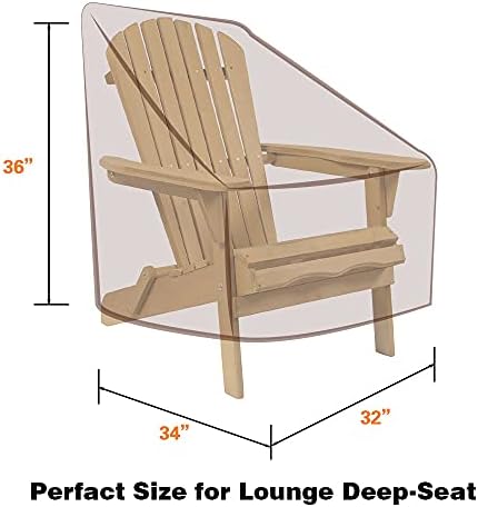 Waterproof: The size of adirondack chair cover is 32″W x 34″D x 36″H. The oxford fabric with an added UV-stabilized & Water-resistant coating and a water-resistant laminated backing could prevent water from seeping through Cover and keeps your outdoor furniture dry and reday to use.