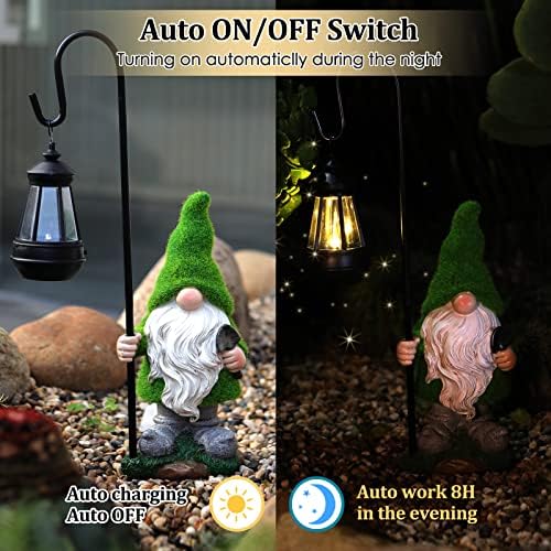 【Easy to Use】The garden gnome statues are incredibly easy to use. Simply press the button at the bottom and leave it in the ‘on’ position during the day. The solar panel will then charge, and your statue will light up automatically at night, creating a hassle-free outdoor decoration experience.