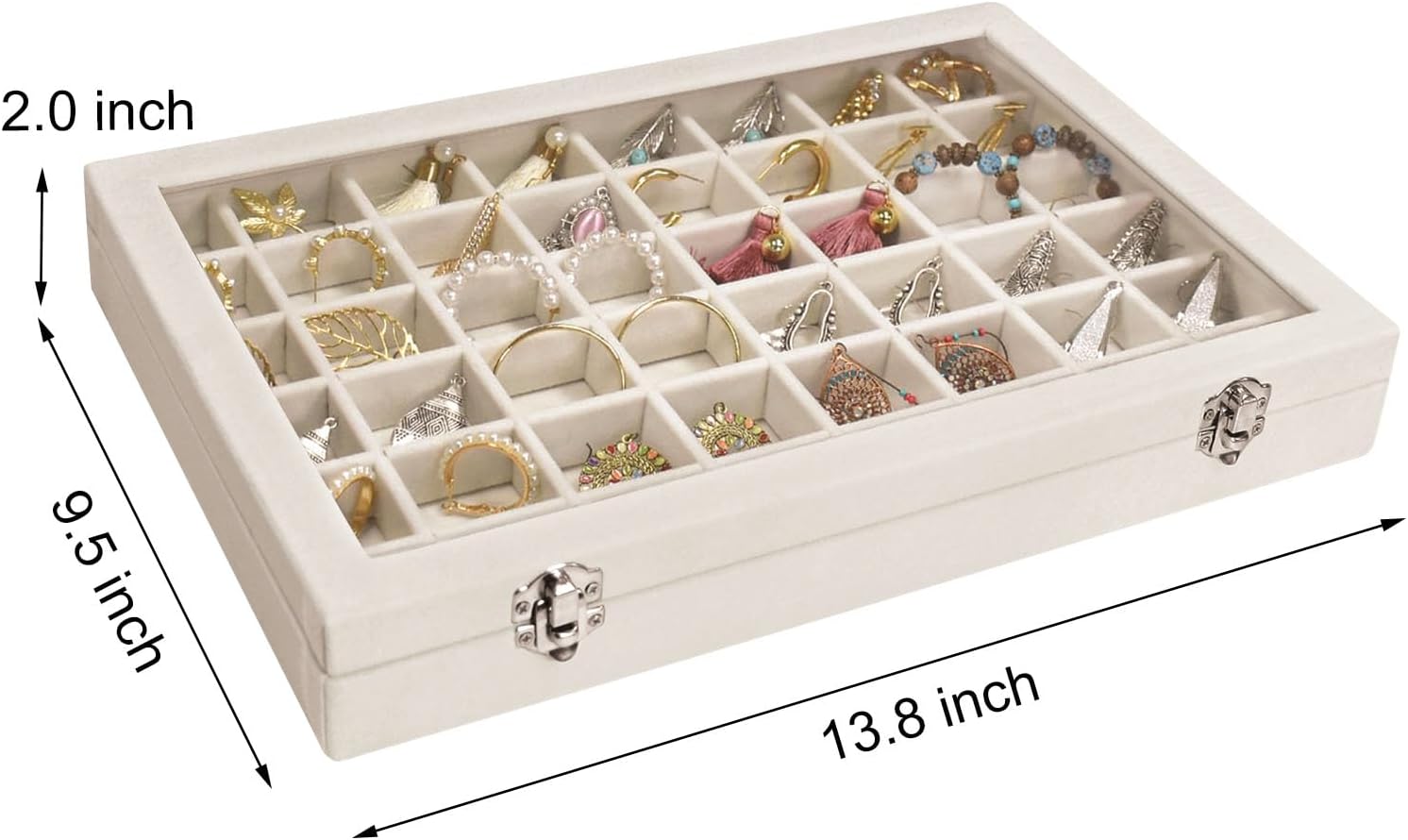 Product features: The Siveit 48 grid beige jewelry display organizer is made of composite boards, and the interior and exterior of the jewelry tray are wrapped in long velvet fabric. High density velvet is softer and can better protect your precious jewelry from scratches and wear.