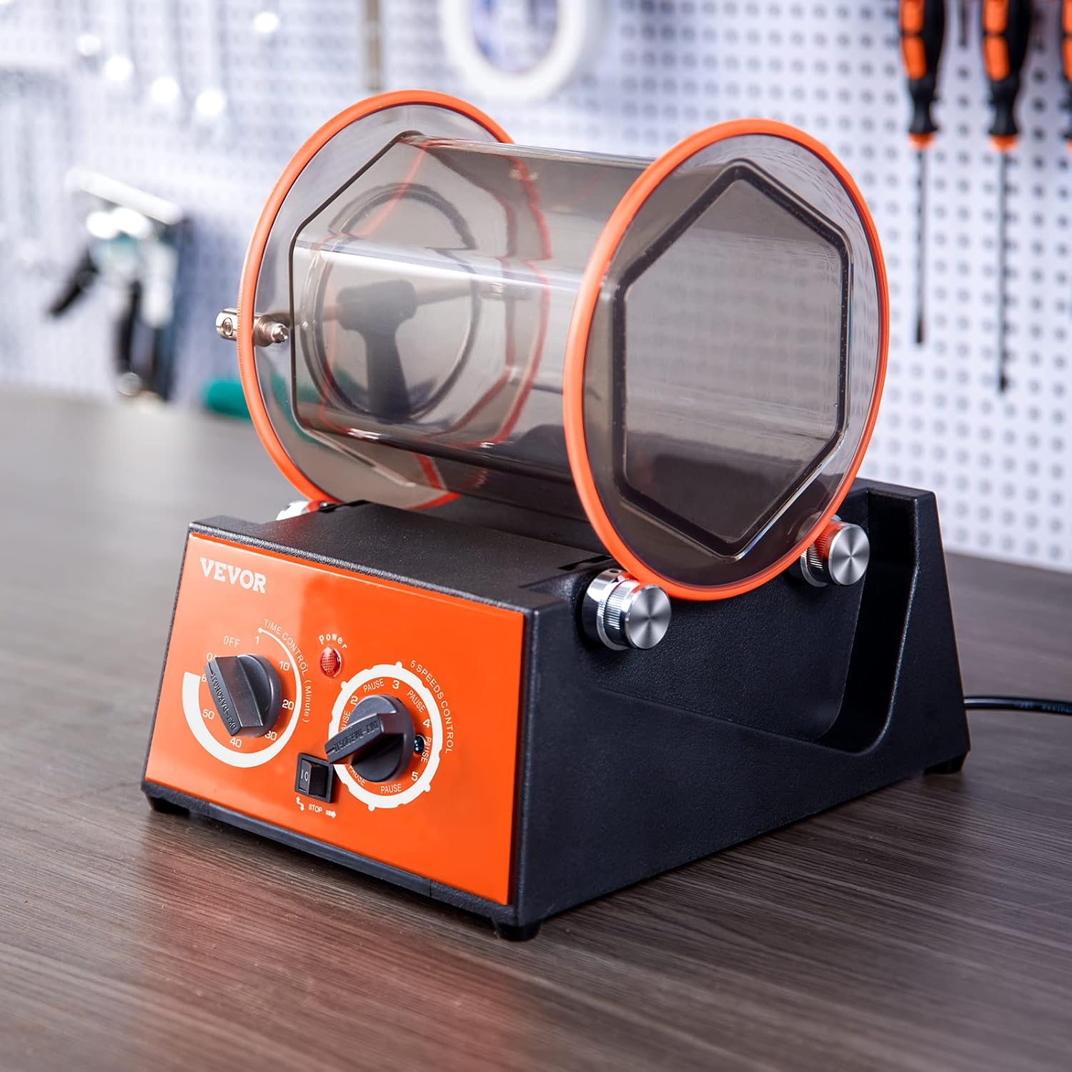 Flexible Adjustment: The jewelry polisher tumbler has the function of bidirectional rotation, 5 speeds, and a timer from 10-60 minutes. The working time and speed can be adjusted according to different materials and surface requirements.