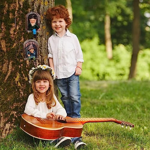 vomiceak Garden Gnome Statue, Elf Out The Door Tree Hugger -5.9 Inch, Funny Garden Tree Decoration, Patio Yard Lawn Porch Decoration