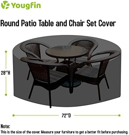 Comes in 5 Sizes: This round patio furniture cover measures 72″(D) x 28″(H), fits round patio table and chairs set. Please measure your furniture before ordering to select the appropriate outdoor furniture cover