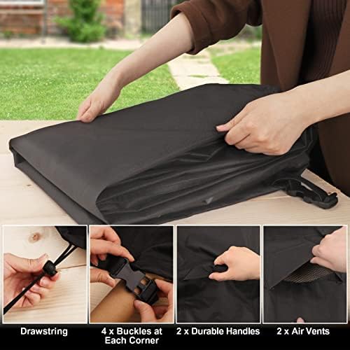 Designed for Easier Use & Better Protection: [a] 2 handles for easily install and remove. [b] 2 mesh air vents improve circulation and reduce condensation. [c] adjustable drawing provides a more customized fit. [d] 4 click-close straps secure the cover during high winds